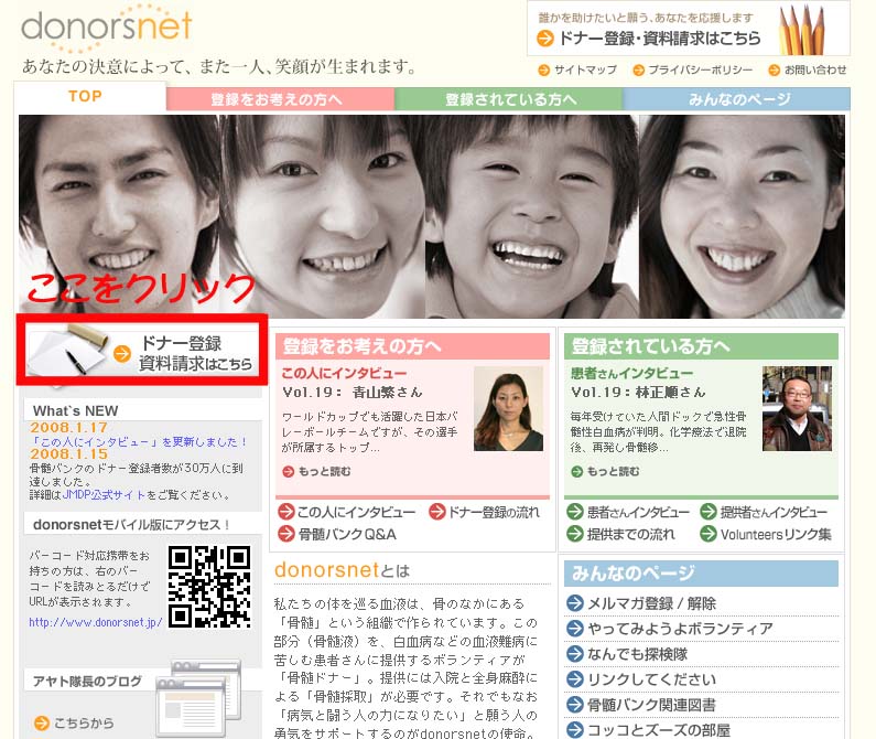 (2)当会のホームページからドナーズネットのバナーをクリックします。