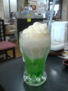 食事が終る頃 お姉さんが「メロンソーダ」を運んでいました。